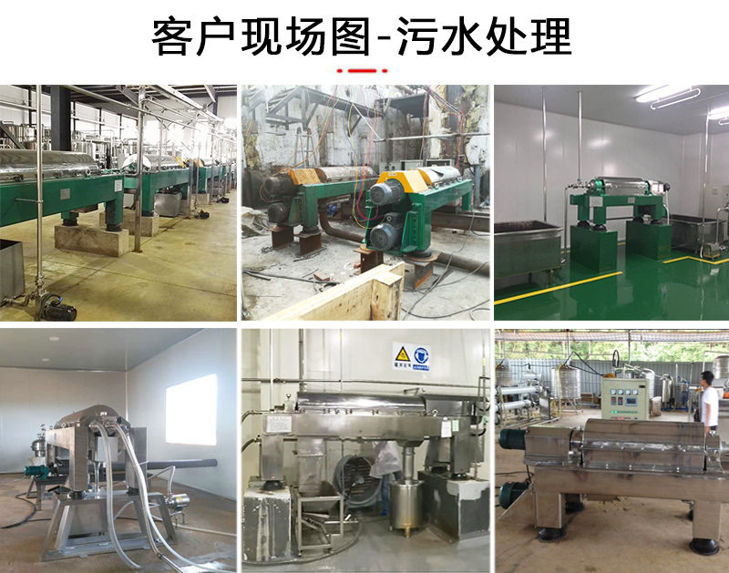 處理過的物料:污泥脫水(氫氧化物污泥、二沉池污泥等),污水處理(市政污水、工業(yè)污水、淀粉污水、化工污水等),污水凈化,廢水處理(酒廠廢水、中藥廢水、藥廠廢水等),飲用水處理,工藝水處理,淀粉回收,殘渣脫水,淤泥脫水,肥料加工,發(fā)酵殘渣處理